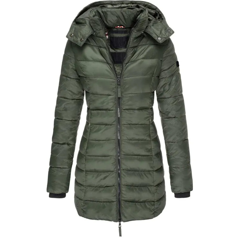 A luxurious hooded jacket designed for colder days. Crafted from high-quality polyester with insulated filling, this coat offers the perfect balance of comfort, warmth, and style. The streamlined shape makes it easy to layer, while the insulated hood ensures protection from wind, cold, and damp conditions. With its full zipper front and multiple color options, the Clarisse Coat combines functionality with timeless elegance—an essential piece for fall and winter.