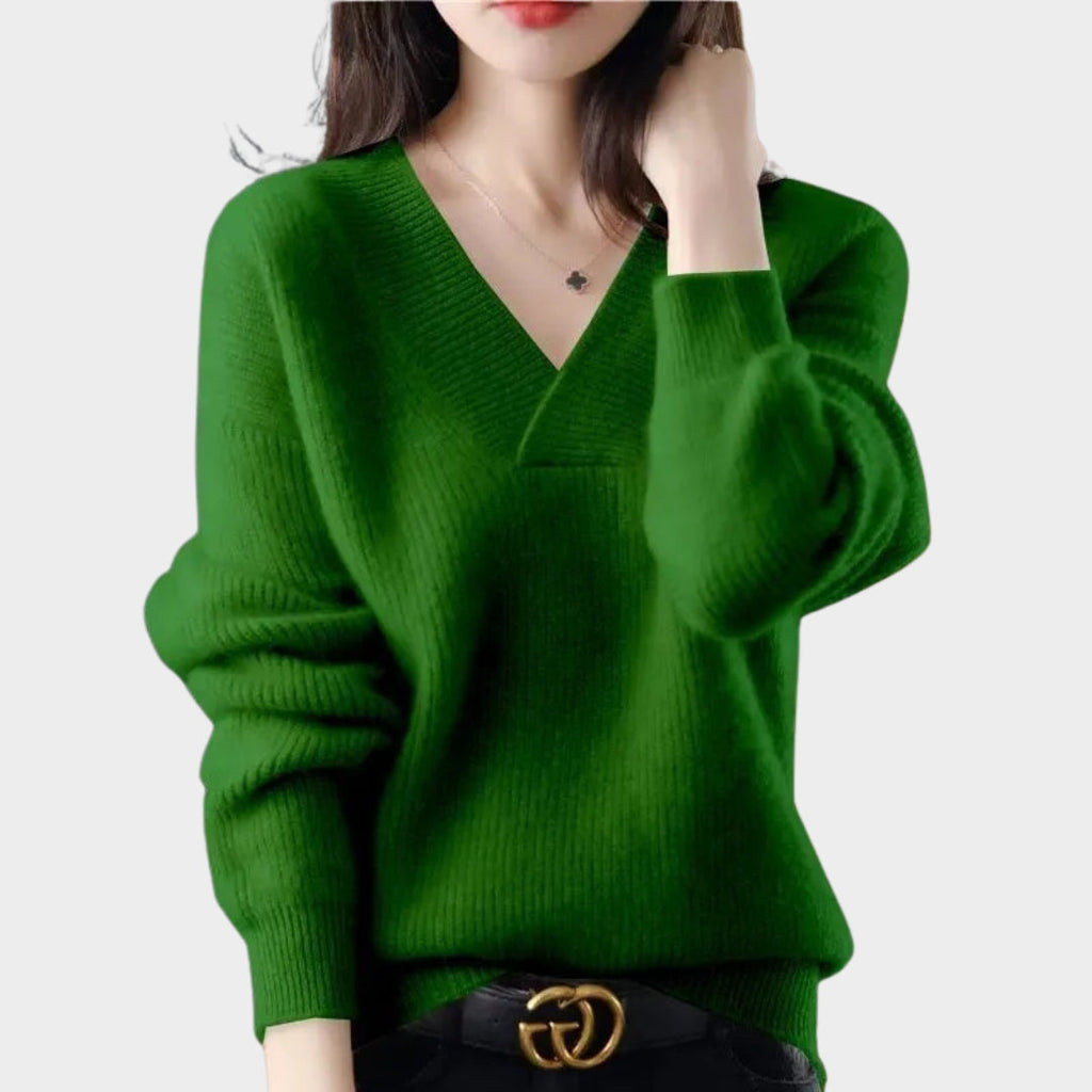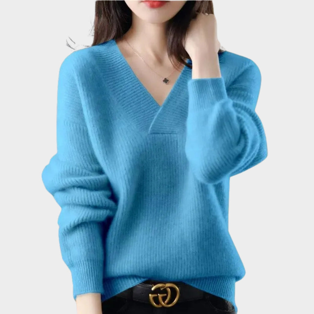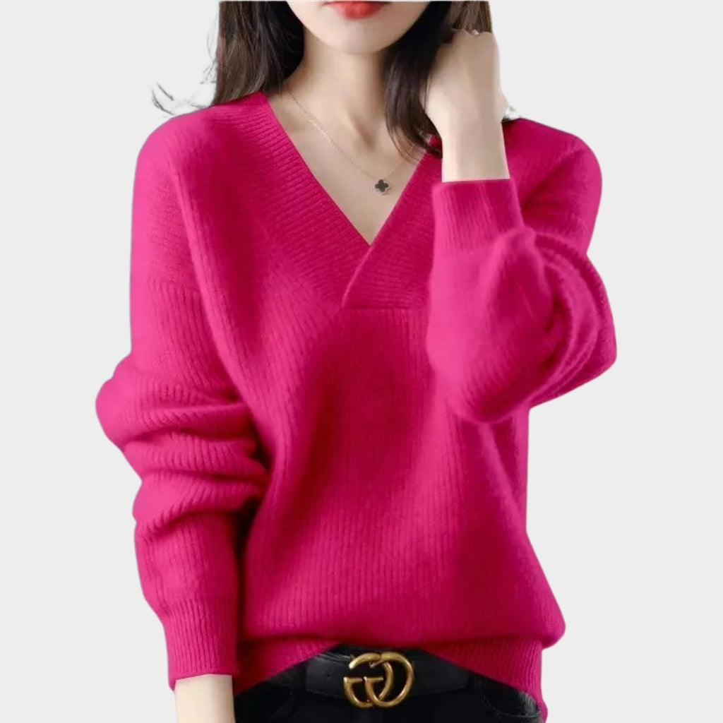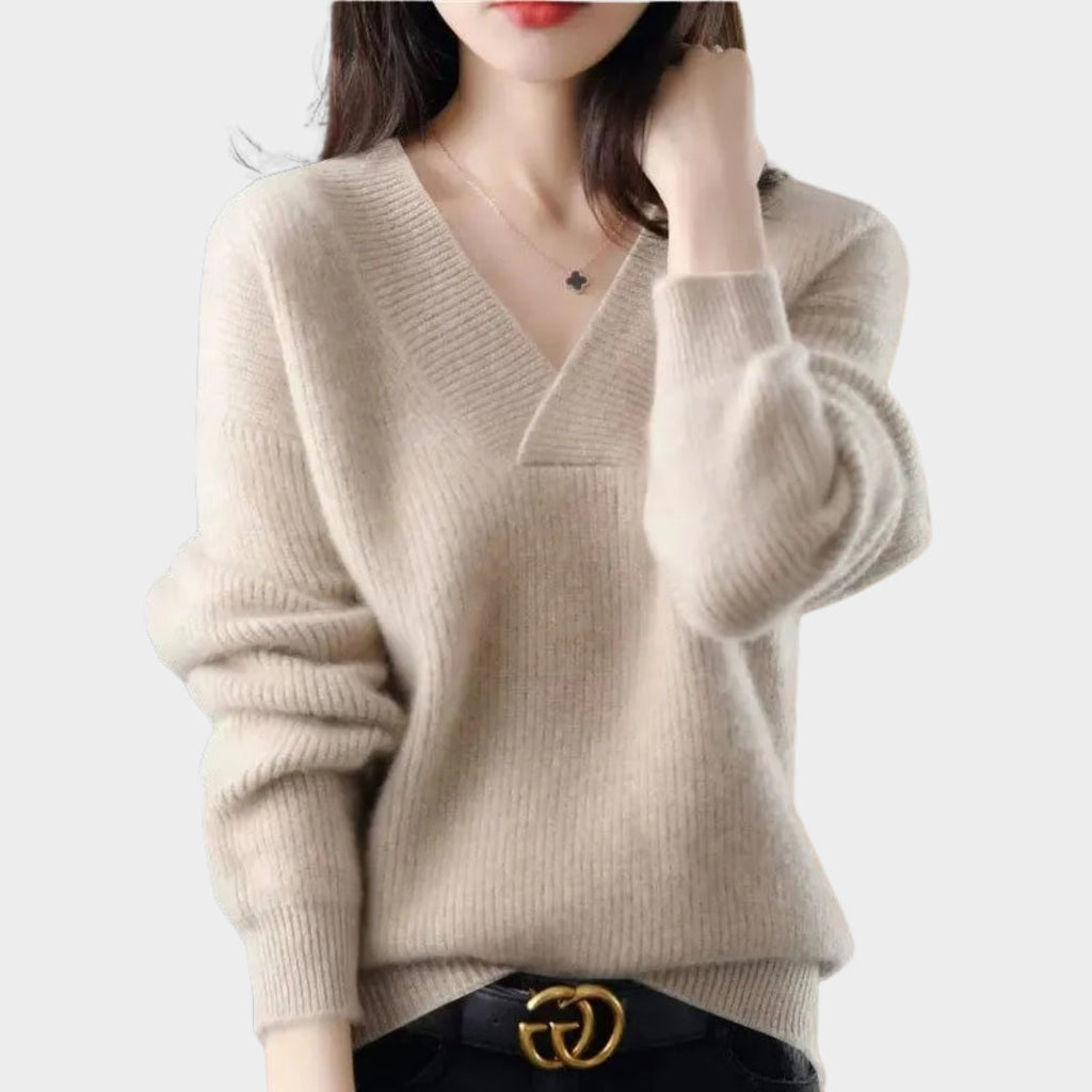 Amber – Women's V-Neck Loose Fit Sweater